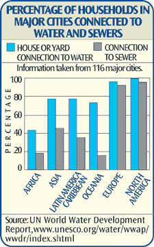World Life Expectancy Map![]() Access to Safe Water Map"More than five million people, most of them children, die every year from illnesses caused by drinking poor quality water." b Percentage of Population Without Reasonable Access to Safe Drinking Water ![]() Reasonable access to safe drinking water is defined as the availability of at least 20 litres per person per day from an improved source within 1 kilometer of the user's dwelling.